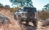 The MagnaFlow Ford Bronco Overland Series Cat-Back Performance Exhaust system #19559 is the perfect solution to further improve the off-road utility of your already-capable 2021-2023 Ford Bronco equipped with the 2.7L twin-turbo V6. This cat-back, direct-fit exhaust kit is designed to install easily and fit perfectly thanks to the hard work of the engineers at MagnaFlow’s Tech Center, who made detailed 3D scans of the entire vehicle in order to ensure perfect fitment. The advantage of such precise tolerances is that the entire performance exhaust system is mounted closer to the undercarriage of the vehicle than the stock system, resulting in significantly improved ground clearance. #19559 also features 3†main piping that leads to a straight-through muffler before terminating in a single 2.5†high-clearance side exit, which further improves the rear departure angle versus the standard tailpipe. The result of this upgrade is improved rock crawling capability and the ability to get out of tricky situations on the trail more easily. This Ford Bronco exhaust system utilizes a tunable NDT (No Drone Technology) quarter-wave resonator to eliminate unwanted noises at cruising speeds en route to your destination, with the added benefit of improving situational awareness when you’re out exploring or camping in the middle of nowhere. Exhaust kit #19559 is engineered to produce MagnaFlow’s deep signature exhaust tone at mild interior and moderate exterior sound levels, ideal for enjoying the character of your engine without scaring Mother Nature away. The exhaust system is built to last thanks to the use of precision CNC robotic manufacturing techniques and durable stainless-steel construction, all backed by MagnaFlow’s limited lifetime warranty.
